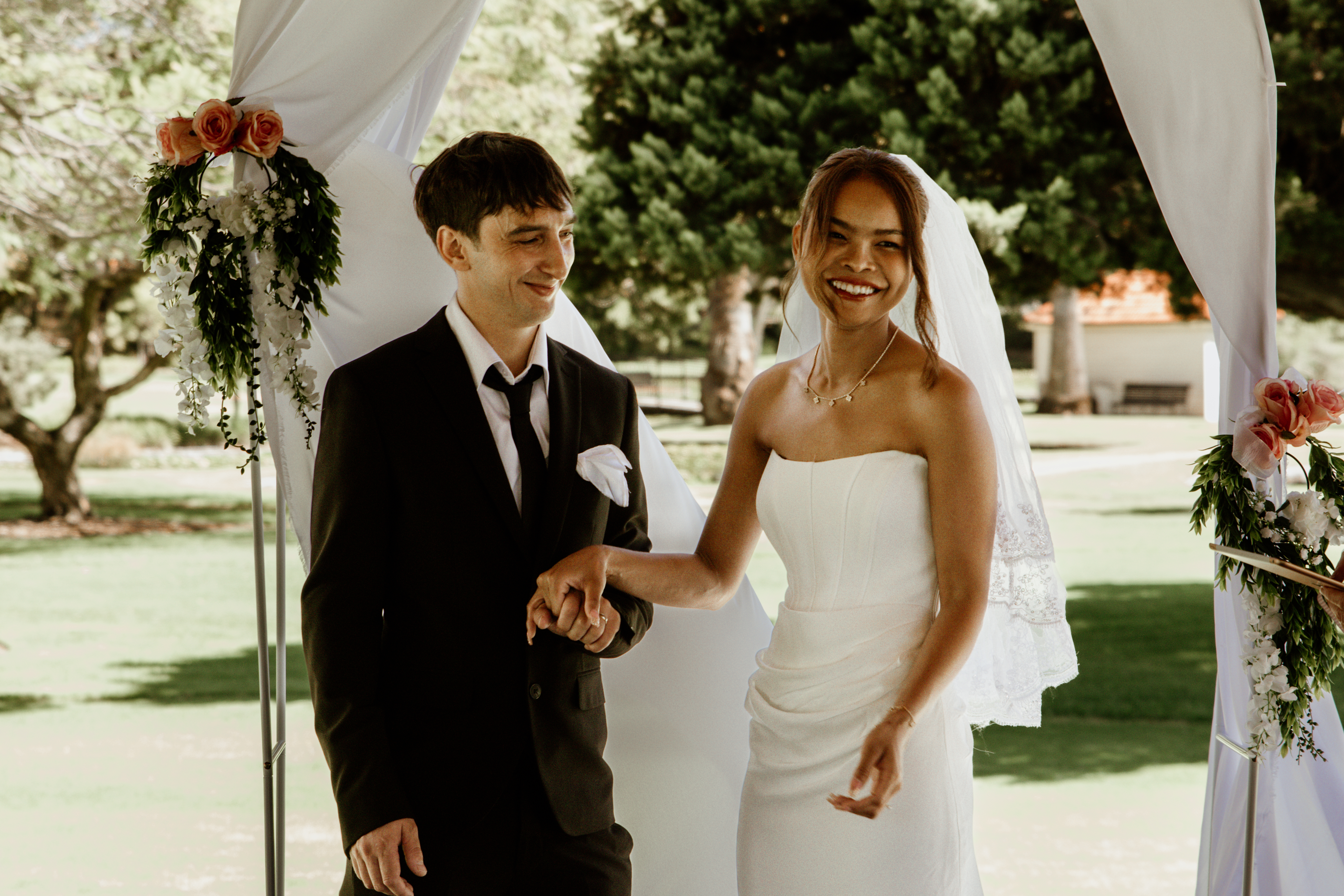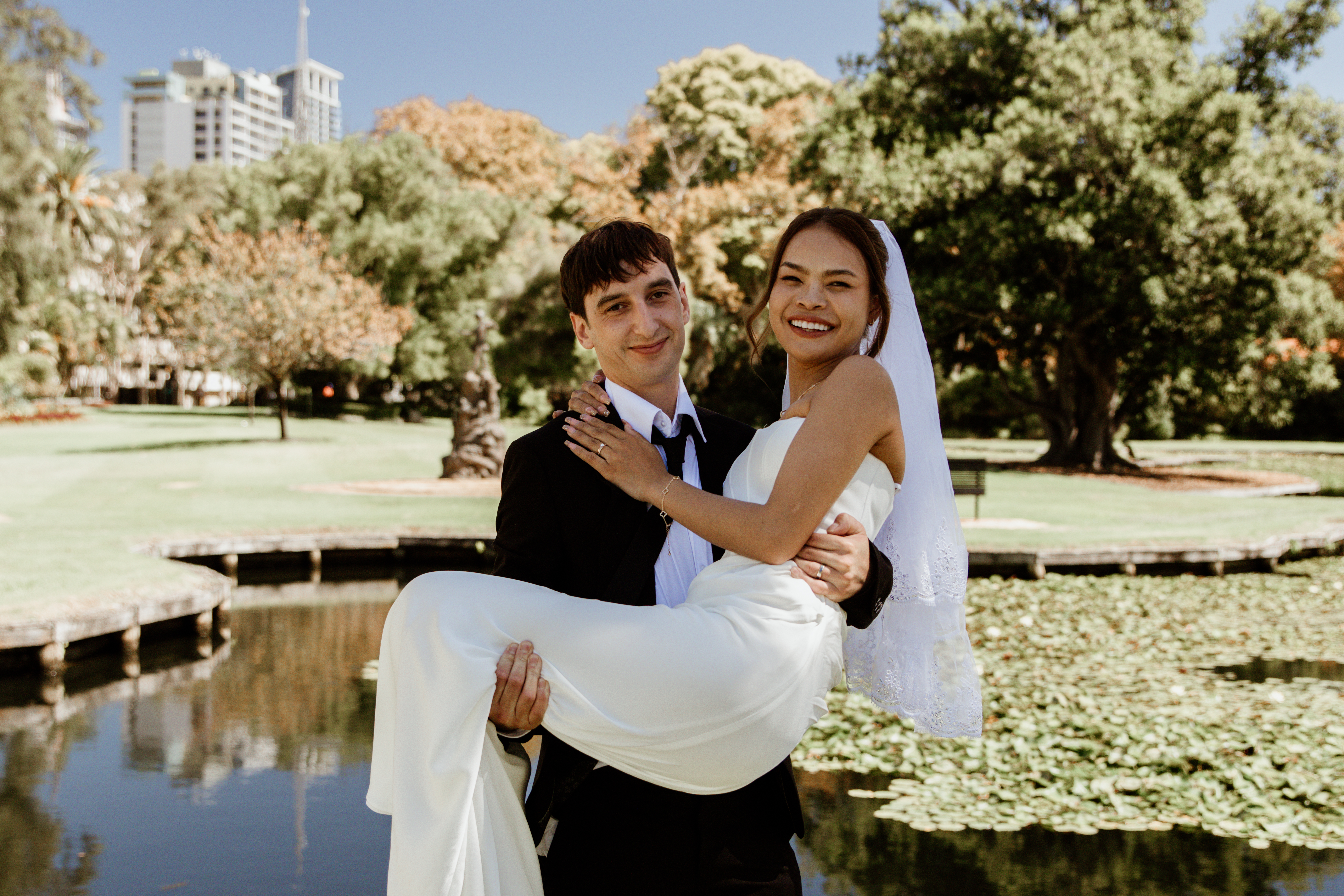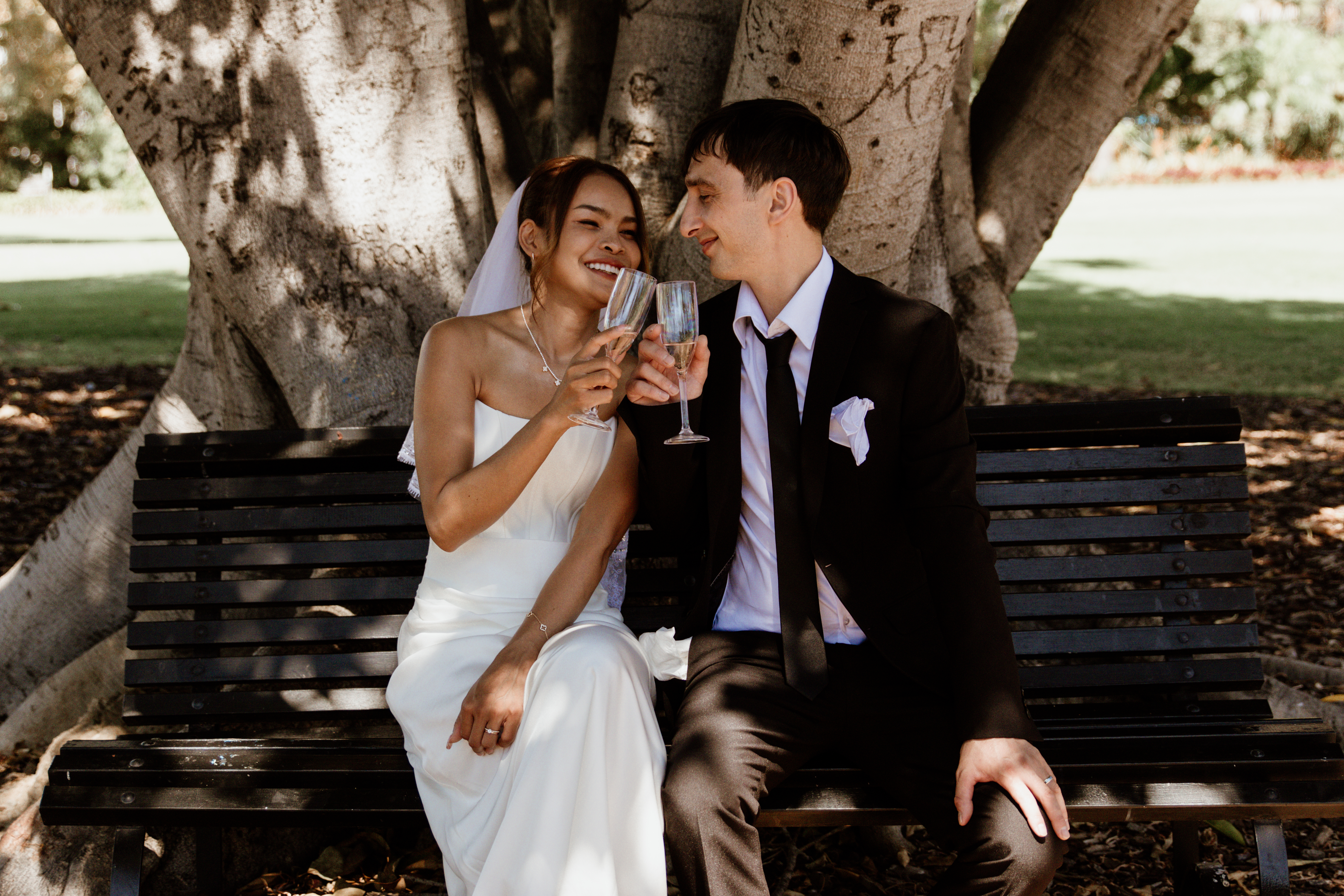 Josh and Nattaya’s wedding at Queens Gardens, East Perth was a beautiful celebration of love, family, and two cultures coming together. With Josh from New Zealand and Nattaya from Thailand, their day was filled with warmth, elegance, and meaningful moments that reflected both of their backgrounds. Set among the lush greenery and timeless charm of Queens Gardens, the wedding was a heartfelt gathering where romance, joy, and connection were at the center of every detail.